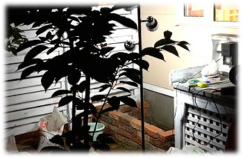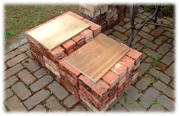 日中は暑いので閉店後に時間がある日の夜間にコツコツと作業をしました。レンガを切る作業はうるさいので日中に済ませておきます。その他の作業は音を全くたてずに静かに作業をすることが可能です。インスタントモルタルは必要な分だけをその都度作れば済みますので時間のある時に楽しみながら少しずつ作業できます。でも蚊取り線香は必須です。夢中で作業をしていたら両耳をさされてしまいました。かゆいなぁ…。さぁ今日の作業はここまでです。作業開始から今日で4日目。最後に全体に軽く水をかけて寝かせます。まとまった時間が取れないので中々進みませんが、それでも少しずつですが形ができてきました♪